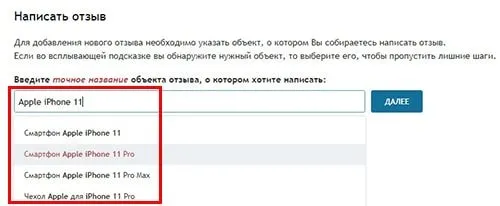 Далее выбирайте наименование товара. Начинайте писать и сайт вам предложить свои варианты.