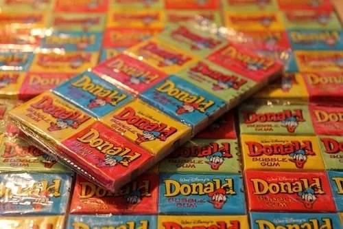 Теперь давайте перейдем к заграничному производителю. Как-то раз я проходил около комиссионного магазина, а там тёрлись спекулянты и в руках у них были разные жвачки. Первое, что бросилось мне в глаза — это красочный блок жвачки Donald.